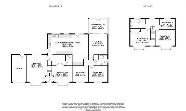 11’9” x 11’9” Power points. TV aerial point. Double glazed window to side. Double glazed sliding patio doors leading to Conservatory.