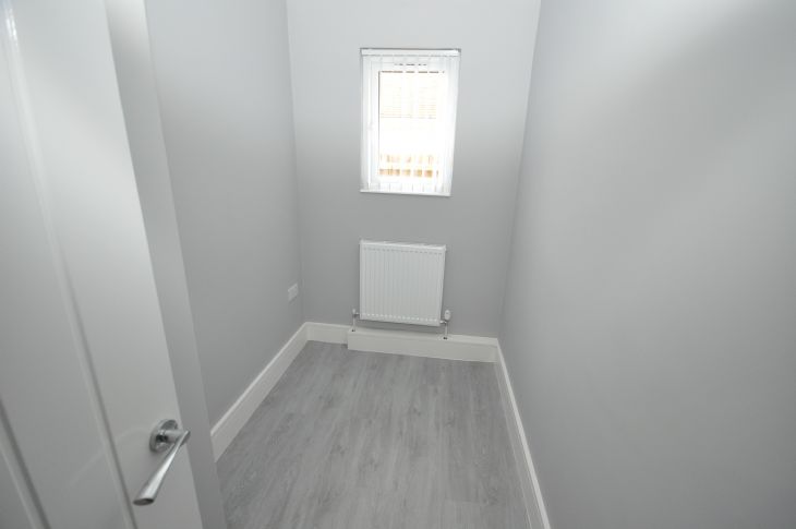 9’ x 5’ Radiator. Vinyl flooring. Double glazed window to side.