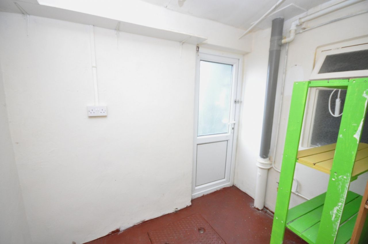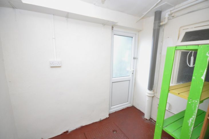 Low level W.C. Worktop with stainless steel sink. Shelving. Baxi back boiler for domestic hot water and central heating (not tested). Radiator. Tile flooring. Double glazed window.