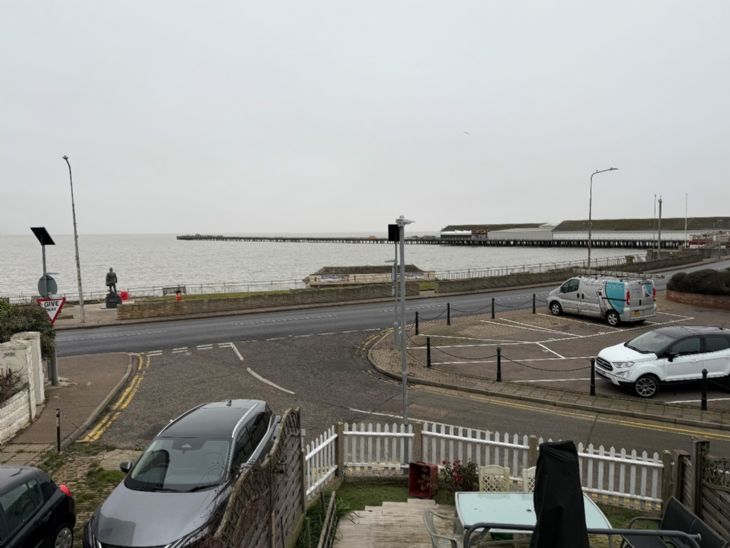 17’2” x 16’ (max measurement) “L” shaped. Shelving. Radiator. Power points. Two double glazed windows to front with superb views over the sea.