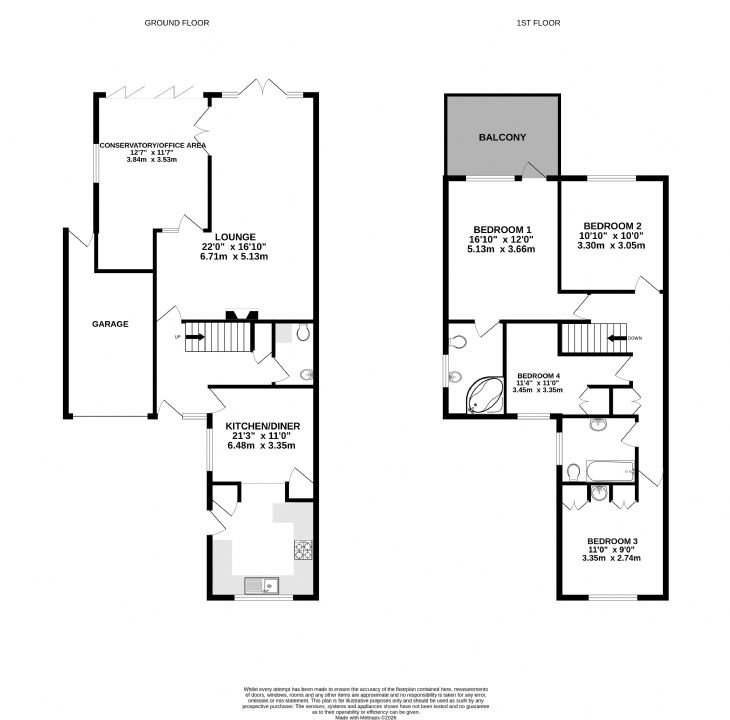 21’3” x 11’ Kitchen Area Single drainer sink unit with cupboards under. Large worktop unit incorporating breakfast bar with cupboards and drawers under. Range of matching wall cabinets. Integrated Fridge and separate freezer. Integrated dishwasher. Tiled flooring. Larder cupboard. Four ring gas hob. Electric double oven. Cooker hood. Concealed lighting and power points. Radiator. Double glazed window and door leading to front.