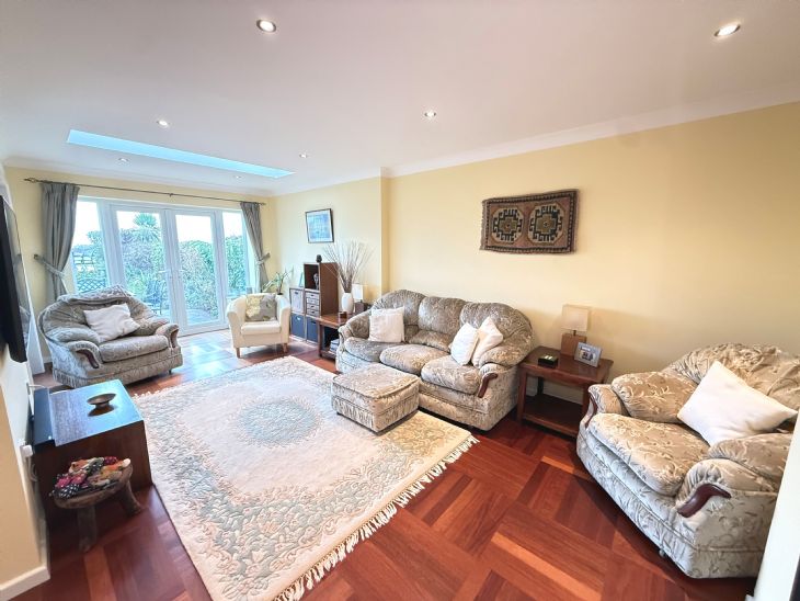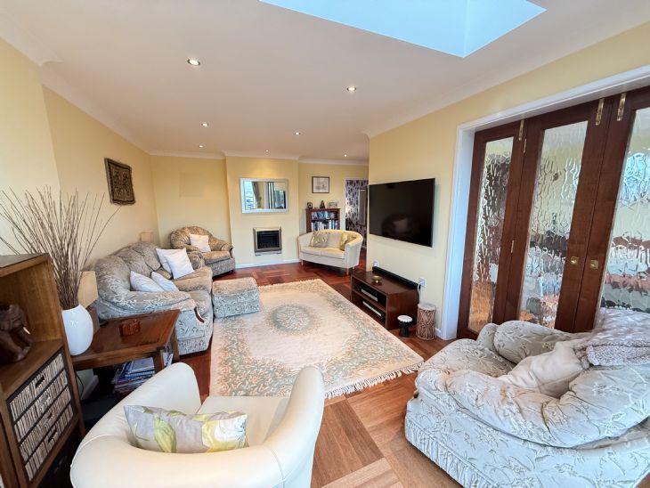 22’ x 16’10” L-shaped (maximum measurement). Gas fire. Covered radiator. Two further radiators. Wood flooring. Power points. TV aerial point. Spotlights. Two double glazed Velux windows in ceiling. Single glazed folding doors leading to Garden Room. UPVC double glazed window and french doors leading to rear garden with superb views over open countryside down towards the Walton Backwaters.