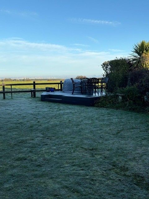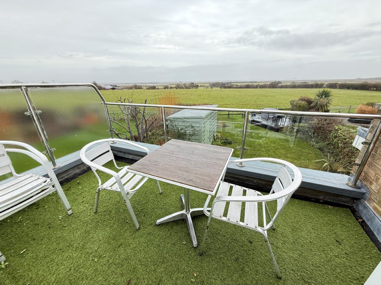 Good size rear garden mainly laid to lawn with flower borders and beds. Ring main of power sockets and ornamental lighting. Large timber shed with power and light. Raised decking area. Superb panoramic views of open farmland down towards the Walton Backwaters.