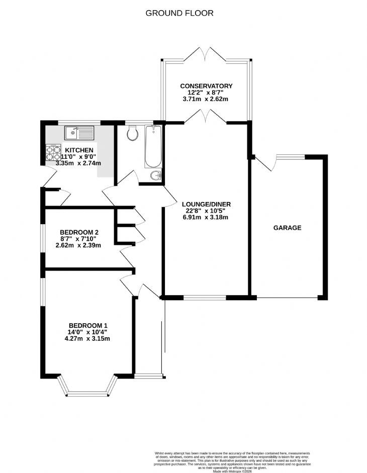 Attached garage with up and over door. Light and power. Double glazed window and rear personal door.