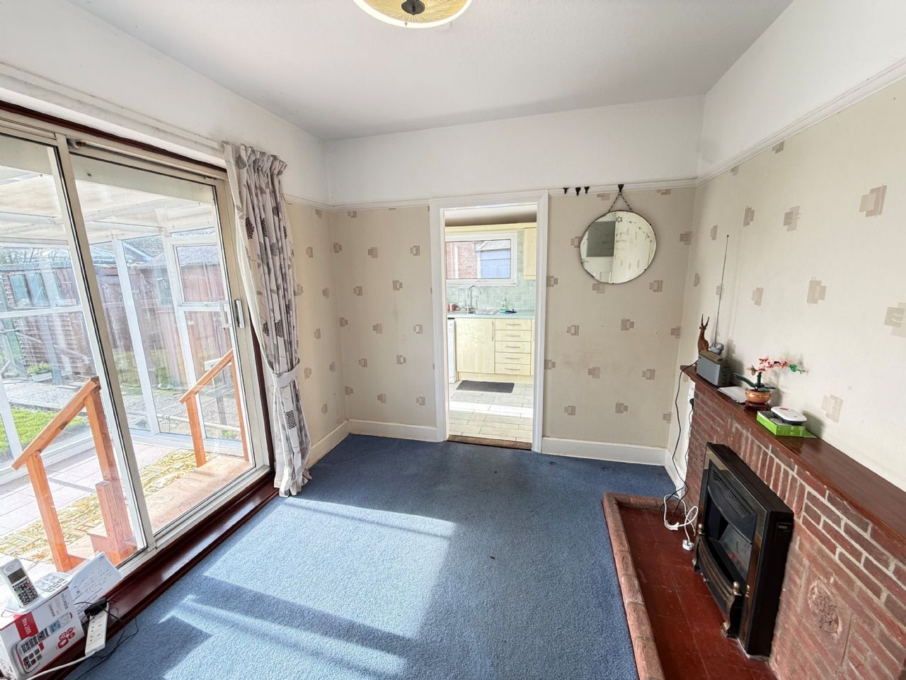 24’ x 10’ (plus bay) Electric fire with attractive surround. Double radiator. Power points. Telephone point. Double glazed bay window to rear. Double glazed sliding patio door leading to Conservatory.