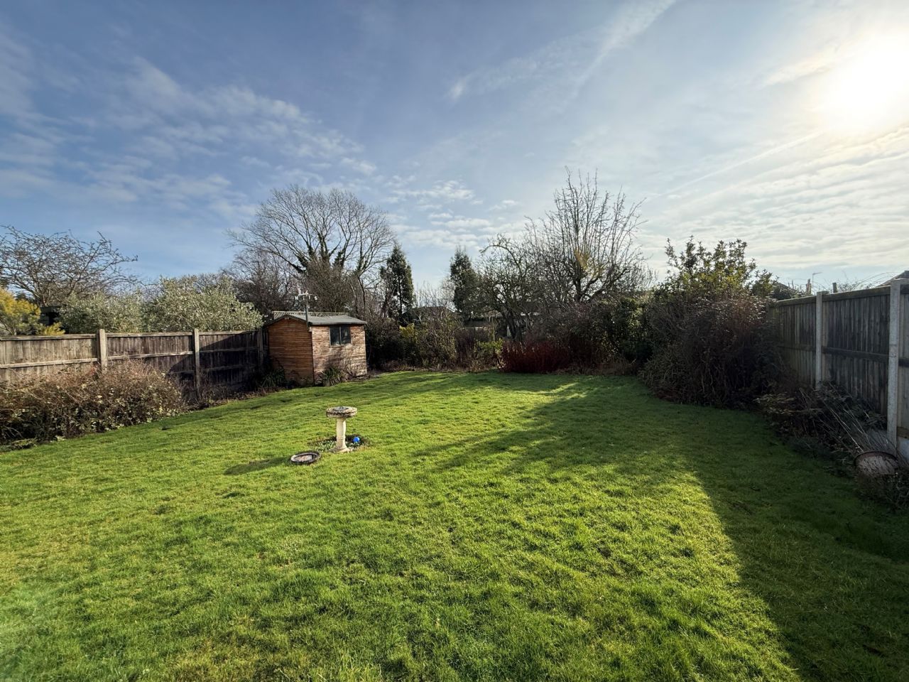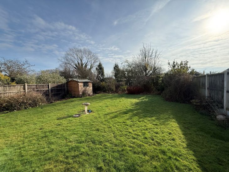 Over 100’ south facing rear garden. Two timber sheds. Greenhouse. Laid to lawn. Flower borders and beds. Vegetable plot. Fruit trees. Shrubs.