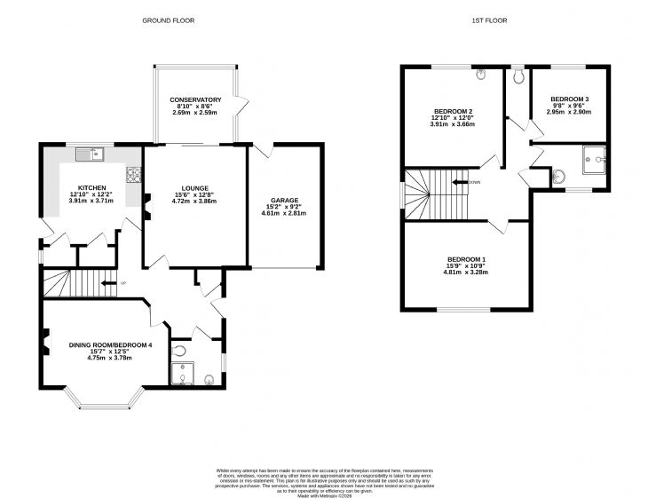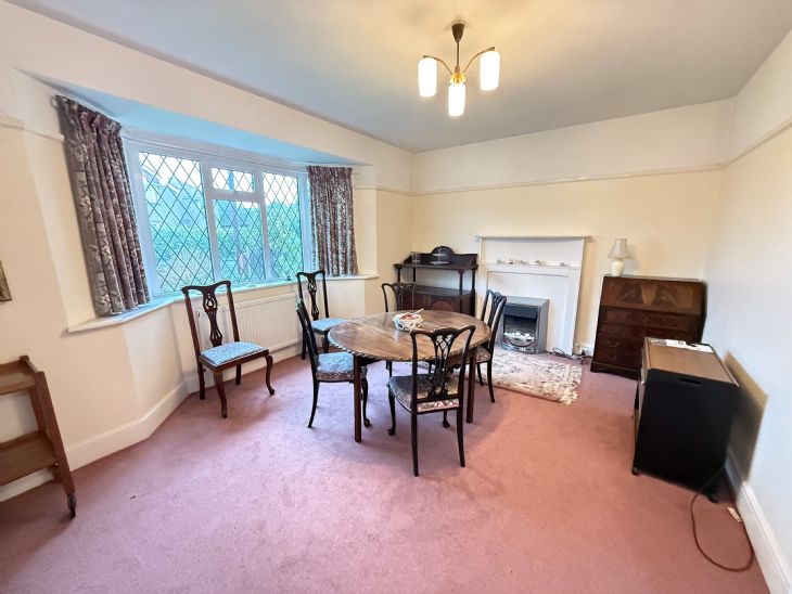 15’7” x 12’5” Electric fire with surround. Radiator. Power points. Double glazed leaded light bay window to front.