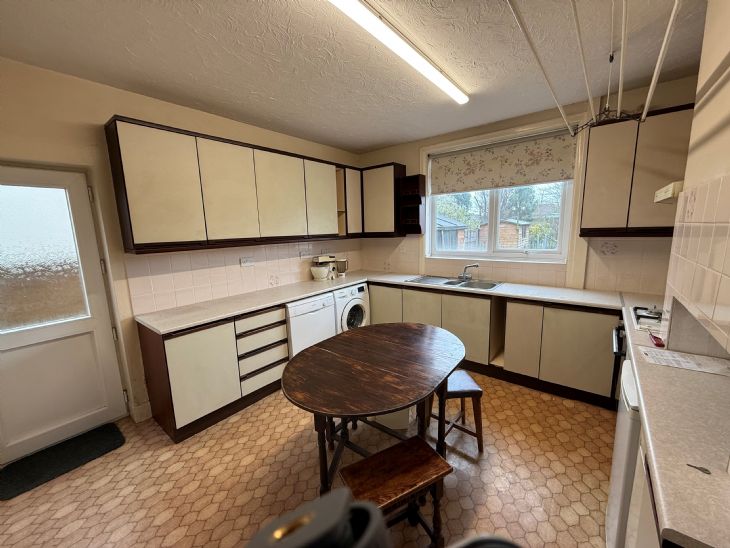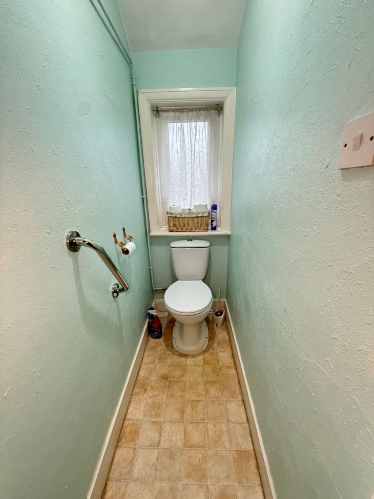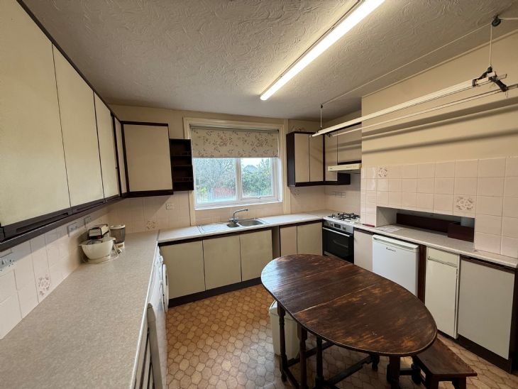 12’10” x 12’2” Stainless steel sink top, single drainer 1 ½ bowls with cupboards under. Worktop unit with cupboards and drawers under. Matching wall cabinets. Four ring gas hob. Electric oven. Fitted washing machine and dishwasher to remain. Double radiator. Gas boiler for domestic hot water and central heating. Larder and pantry cupboard. Double glazed window and door leading to rear garden.
