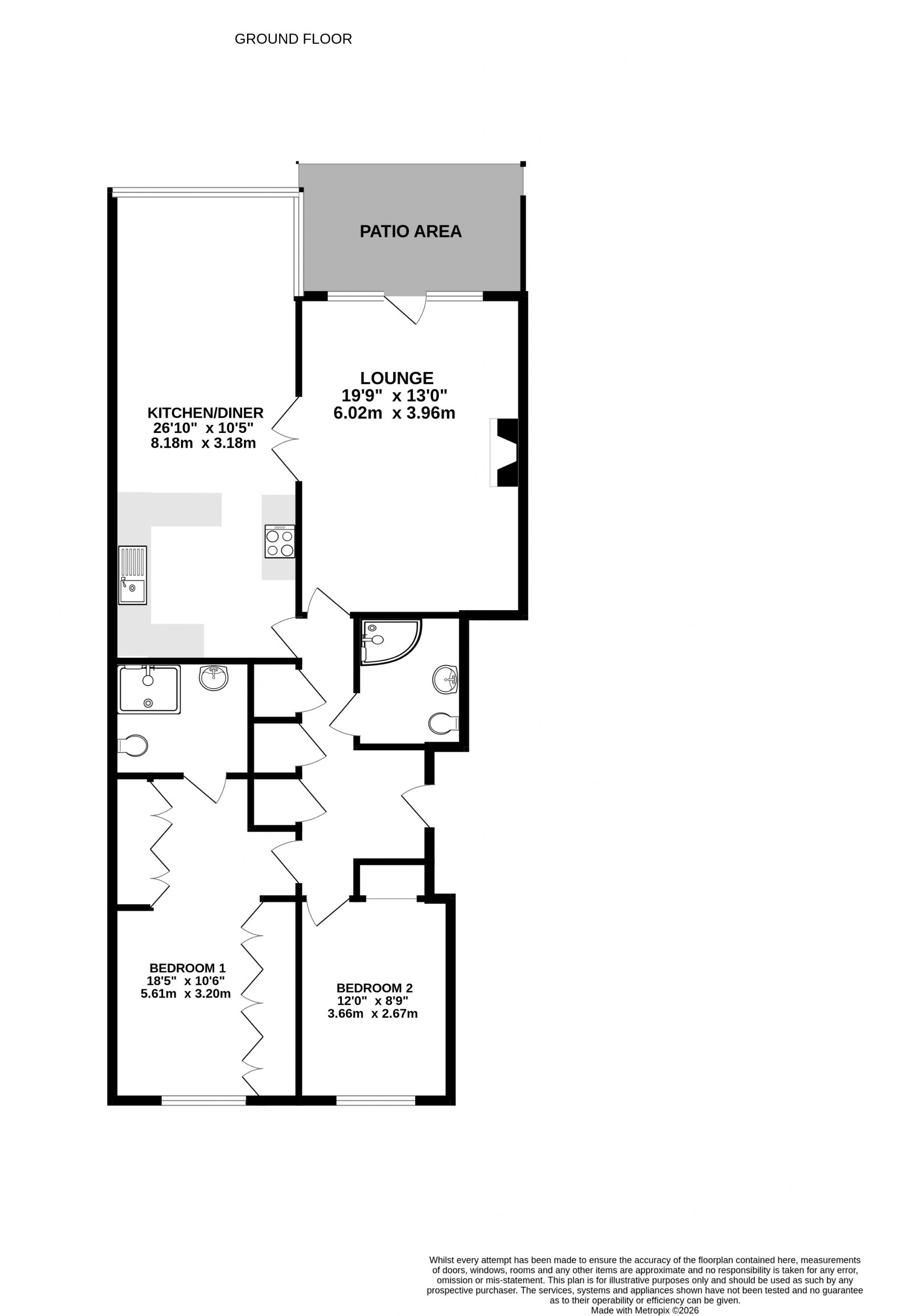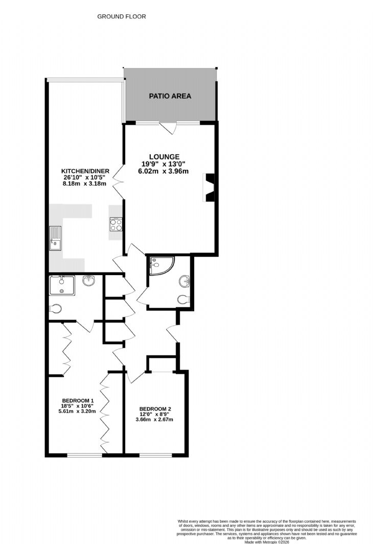 12’ x 8’9”. (plus wardrobe area) Gas boiler for domestic hot water and central heating. Radiator. Power points. Double glazed window to rear.