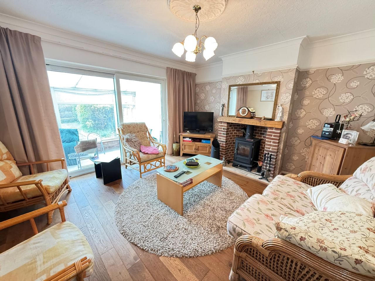 14’ x 12’ 3”. Multi-fuel fire with brick surround. Radiator. Wood flooring. Power points. TV aerial point. Double glazed sliding patio doors leading to rear garden.