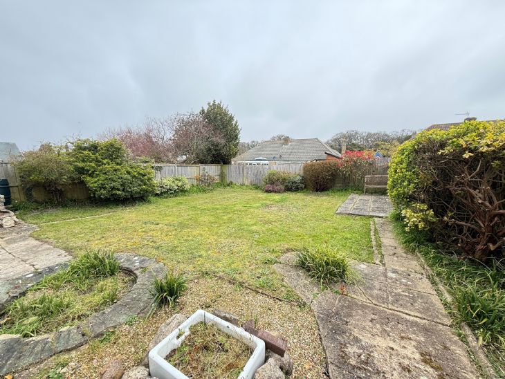 Good size rear garden. Laid to lawn. Outside tap. Timber shed. Decking area. Side access.