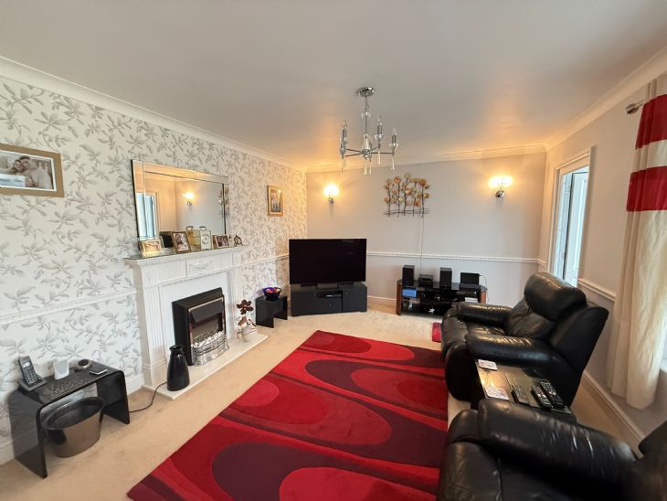 14’ x 12’ 3”. Multi-fuel fire with brick surround. Radiator. Wood flooring. Power points. TV aerial point. Double glazed sliding patio doors leading to rear garden.