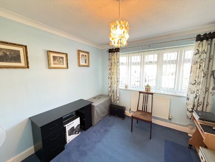 12’ 5” x 10’ 6”. Radiator. Power points. Double glazed bay window to front.