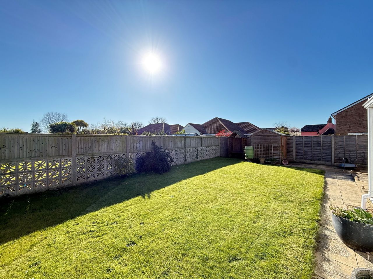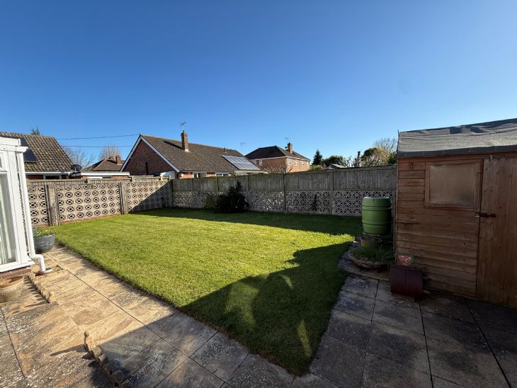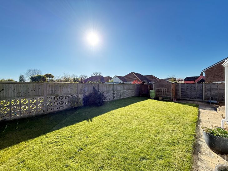Good size rear garden. Laid to lawn. Outside tap. Timber shed. Decking area. Side access.