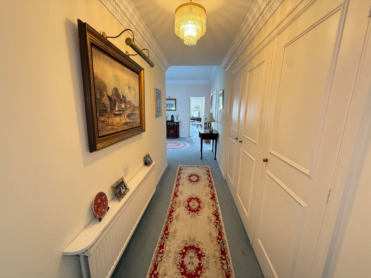 Spacious entrance hall. Cloaks cupboard. Door accessing lift. Double radiator. Further storage cupboard.