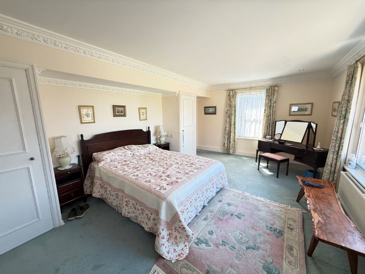21’3” x 13’2”. Two built in wardrobes. Double radiator. Power points. Triple glazed window to side and rear with magnificent views of tennis club and open countryside towards Great Holland.