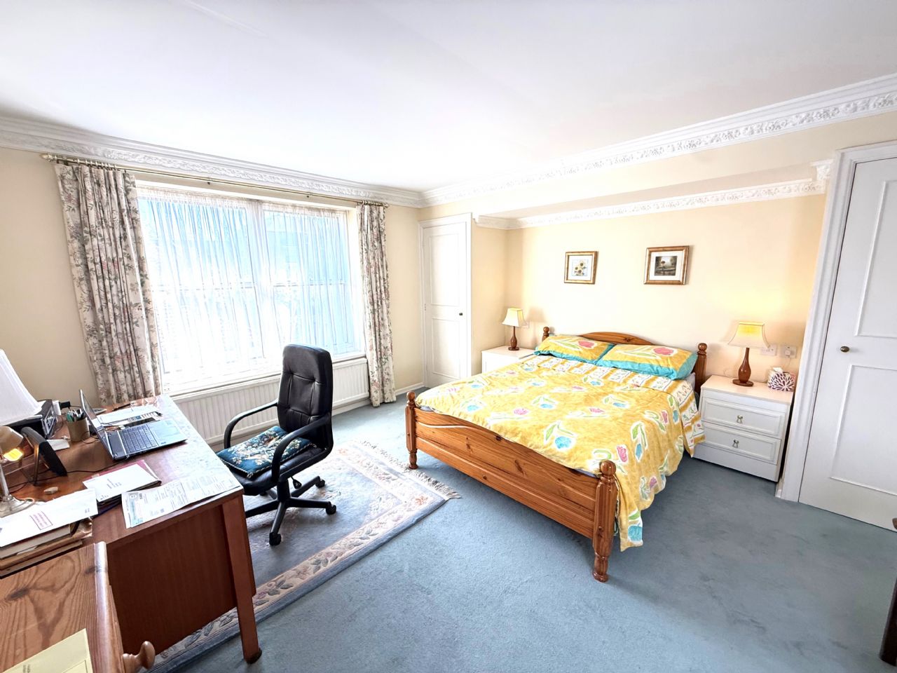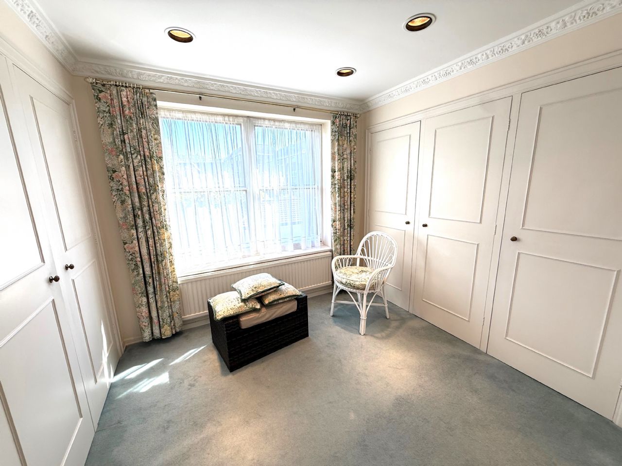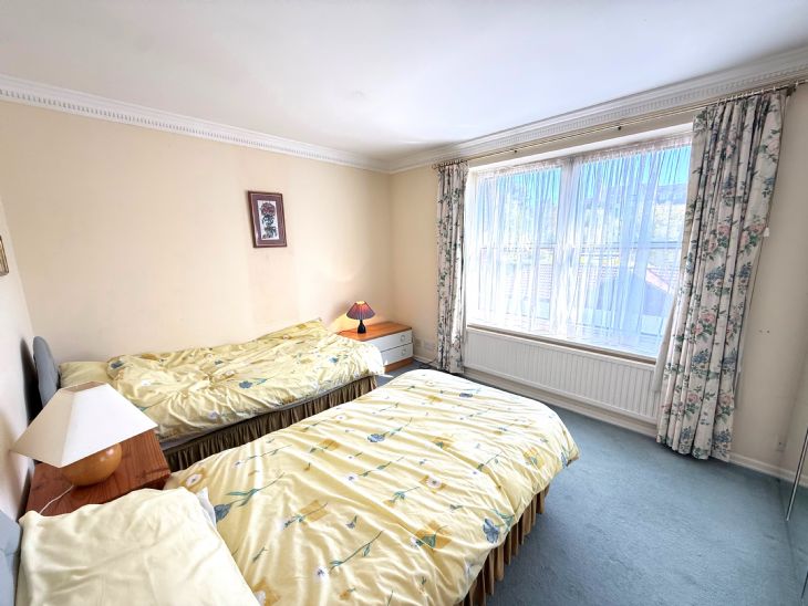17’4” x 12’. Double radiator. Power points. Three fitted cupboards. Triple glazed window with superb views of Frinton Tennis Club and across open countryside towards Great Holland.